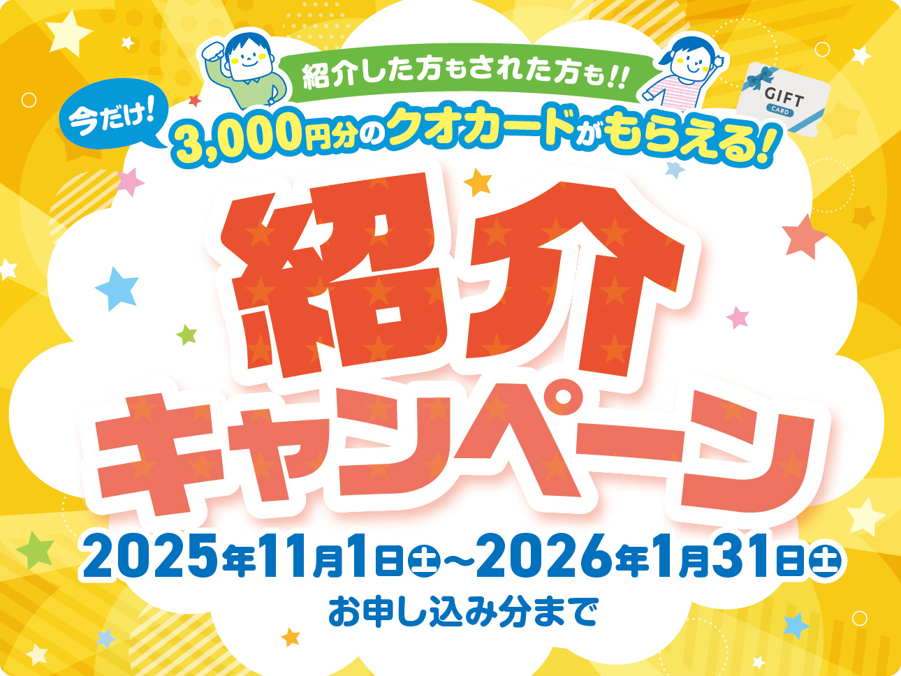 今なら紹介した方も、紹介された方も3,000円分のQUO(クオ)カードが必ずもらえる「紹介キャンペーン」がスタートしました。