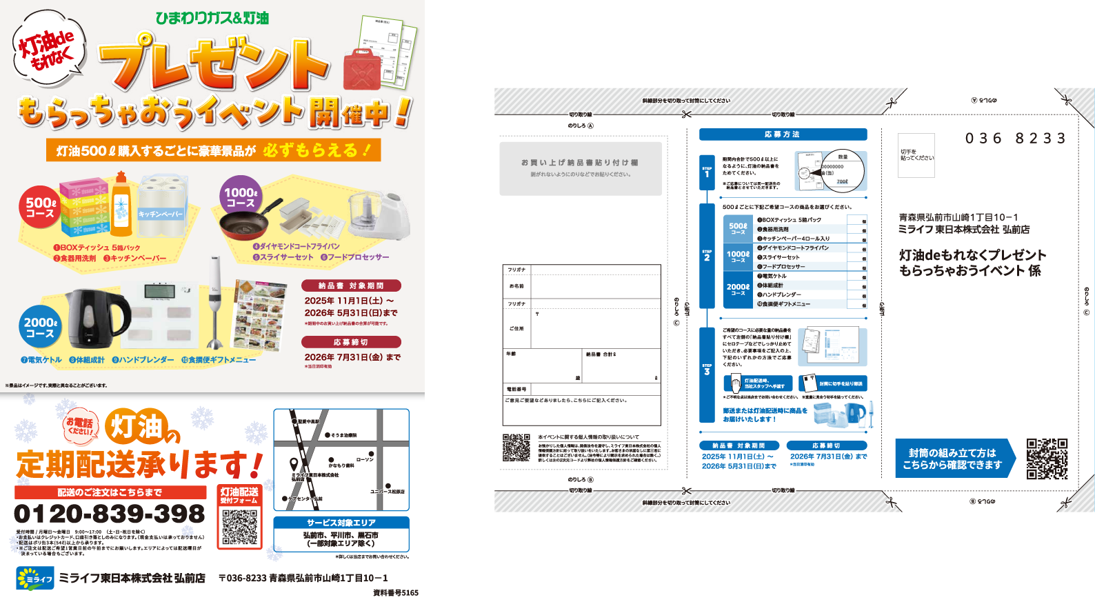 弘前店のひまわり灯油定期配送エリア・カレンダーについて、詳しくはこちらのチラシをご覧ください。