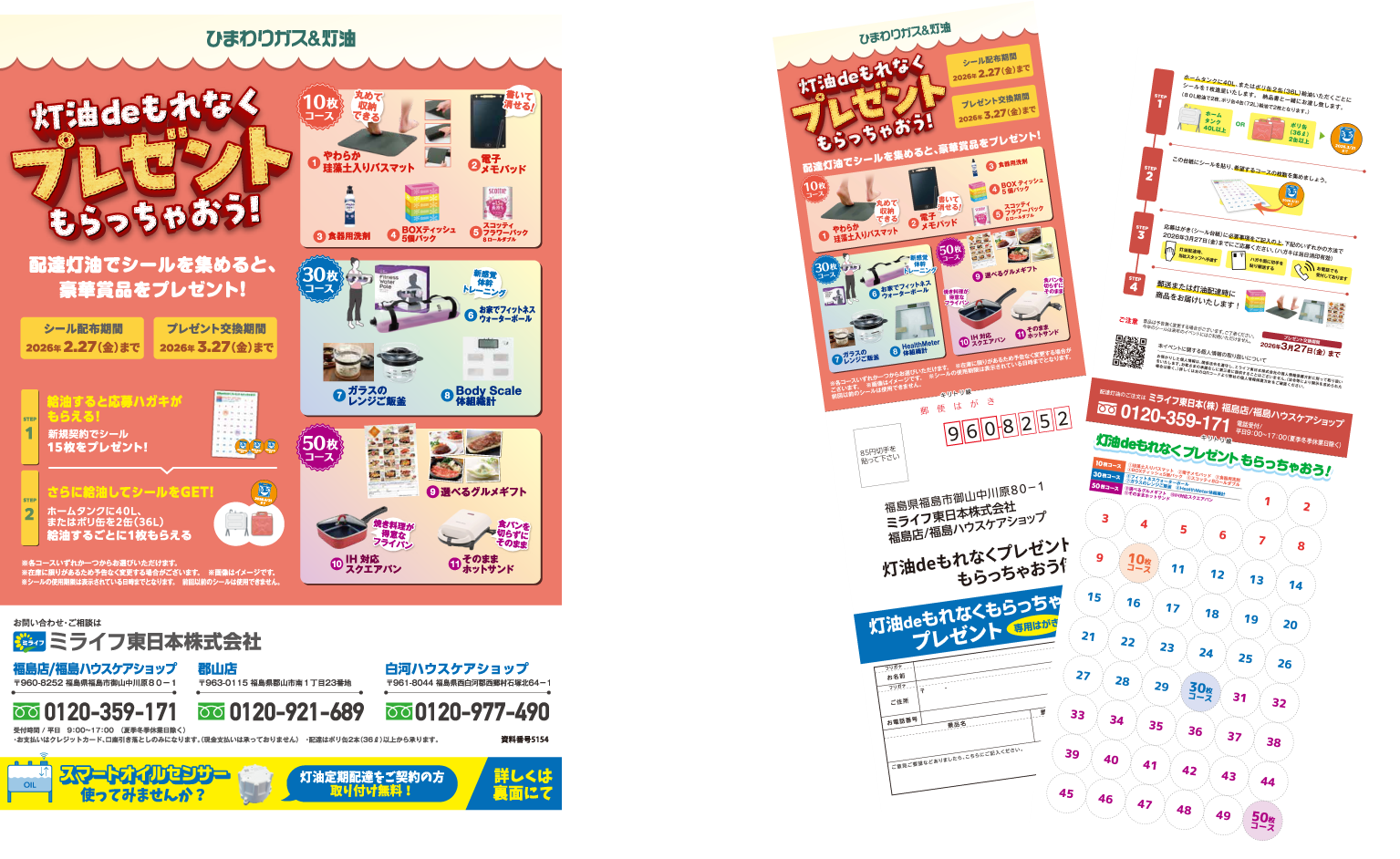 福島県の「灯油deもれなくプレゼントもらっちゃおう!キャンペーン」については、こちらのページもご覧ください。